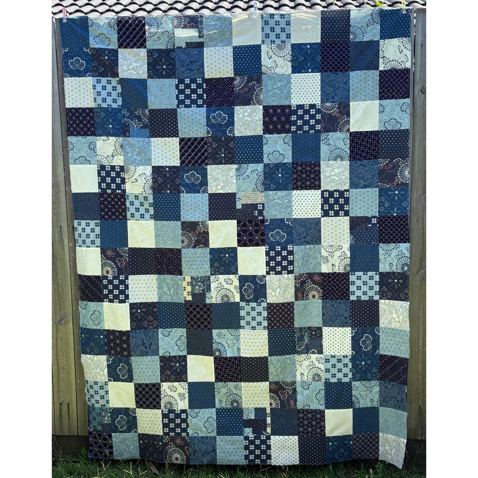 You will need a total of 168 squares of fabric each measuring 5" x 5" (4 1/2" x 4 1/2" finished) and 24 small sashiko squares also measuring 5" x 5" (4 1/2" x 4 1/2" finished).