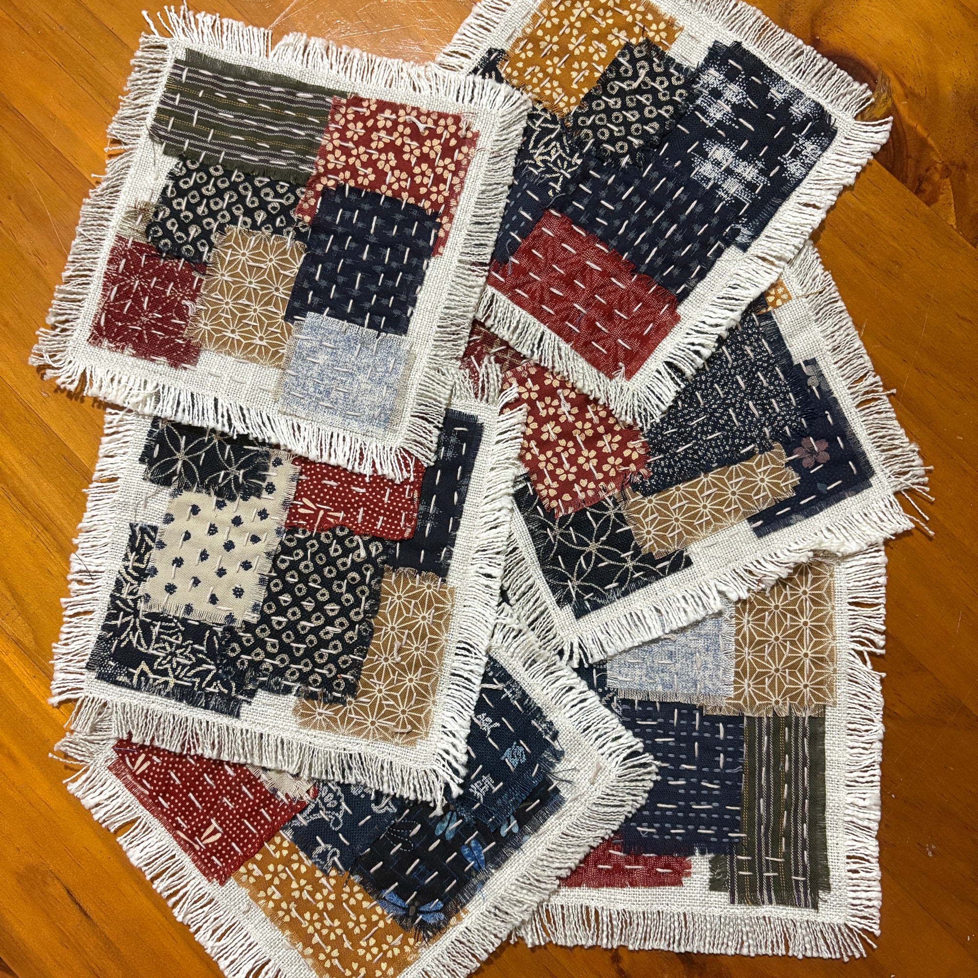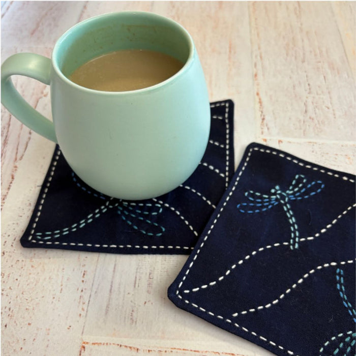 An enjoyable and relaxing workshop to learn the basics of sashiko on a pre-printed sashiko panel. Choose from a variety of panels to suitable the budget of your students. Our dragonfly coasters are a popular choice as are our range of Christmas panels.